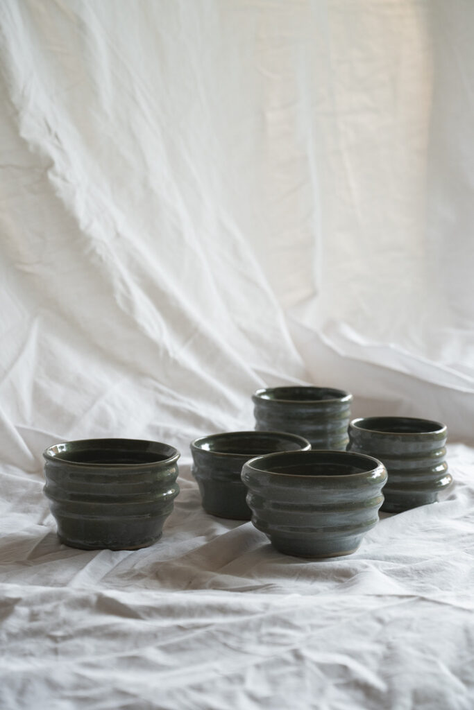 Handmade ceramic planter with curvy shape, glazed in a beautiful bluegrey.